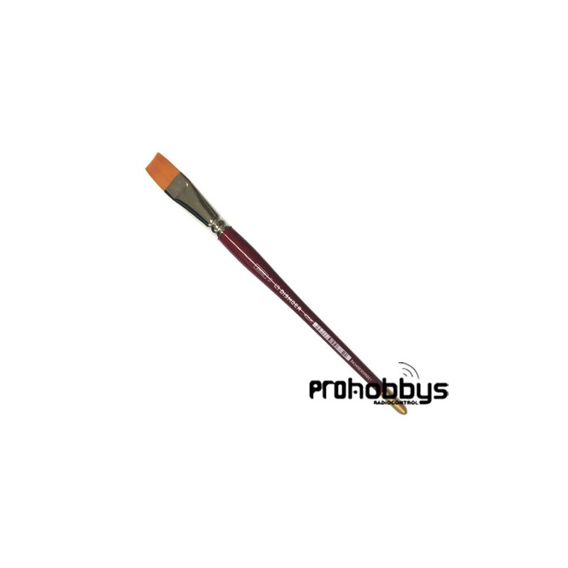 • Pincel plano de pelo sintético, mango corto rojo con la punta dorada. El pelo sintético Toray es de buema calidad y consistencia, es resistente y flexible.