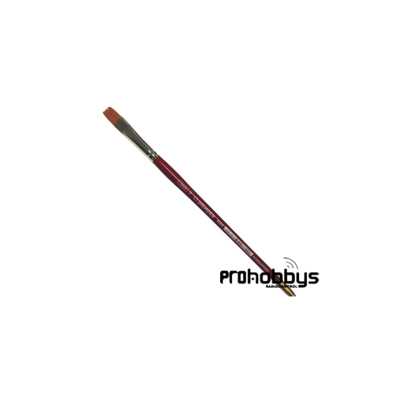 • Pincel plano de pelo sintético, mango corto rojo con la punta dorada. El pelo sintético Toray es de buema calidad y consistencia, es resistente y flexible.