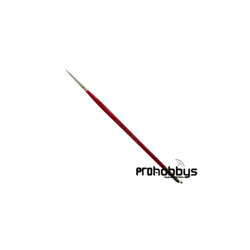 Pincel redondo de pelo sintético, mango corto rojo con la punta dorada. El pelo sintético Toray es de buema calidad y consistencia, es resistente y flexible.