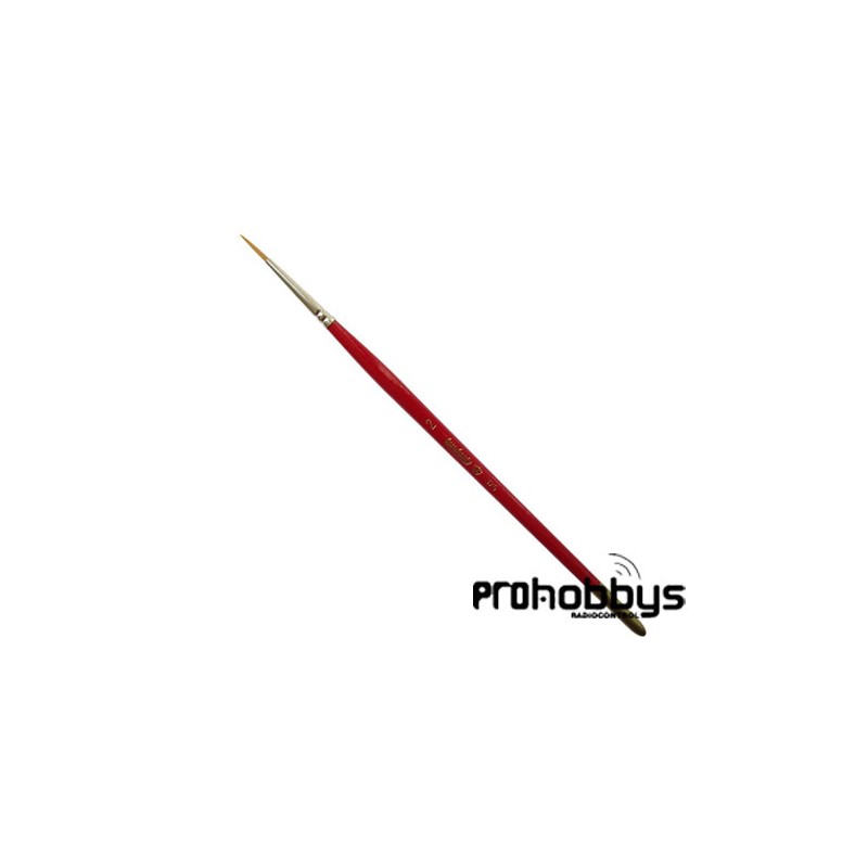 Pincel redondo de pelo sintético, mango corto rojo con la punta dorada. El pelo sintético Toray es de buema calidad y consistencia, es resistente y flexible.