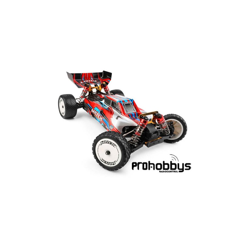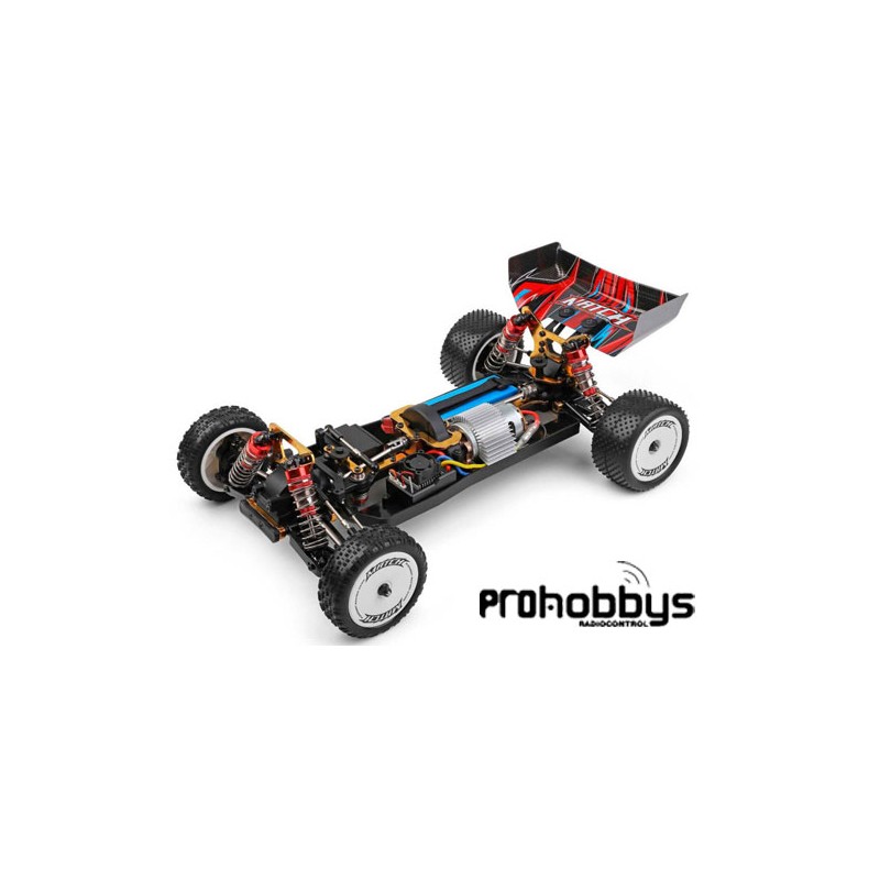 Wltoys 104001. Primer precio en buggy 1:10 off-road.Este es el espectacular buggy Wltoys 104001. Un coche radiocontrol de escala 1:10 con tracción a las cuatro ruedas (4x4). Desde Wltoys han conseguido una estética y comportamiento 100% racing con un precio realmente contenido manteniendo la calidad de los materiales, donde otros utilizan plástico, el Wltoys 104001 utiliza aluminio para aumentar la resistencia a los impactos.