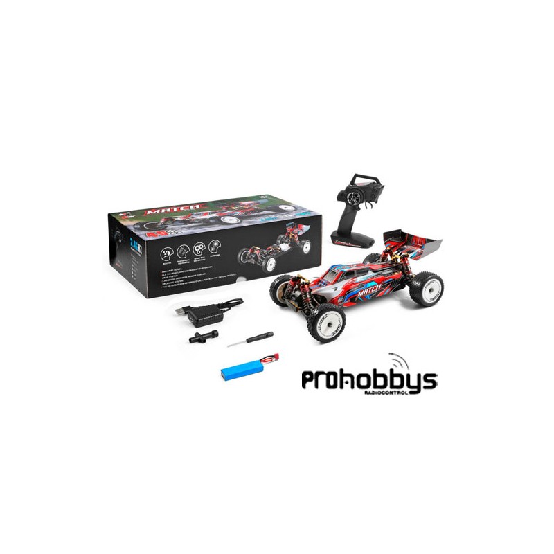 El Wltoys 104001 viene completamente montado y listo para usar, solo tendrás que cargar la batería con el cargador incluido en la caja. En pocos minutos estarás listo para saltar, derrapar y mejorar tus tiempos en cualquier circuito profesional o improvisado en un parking.