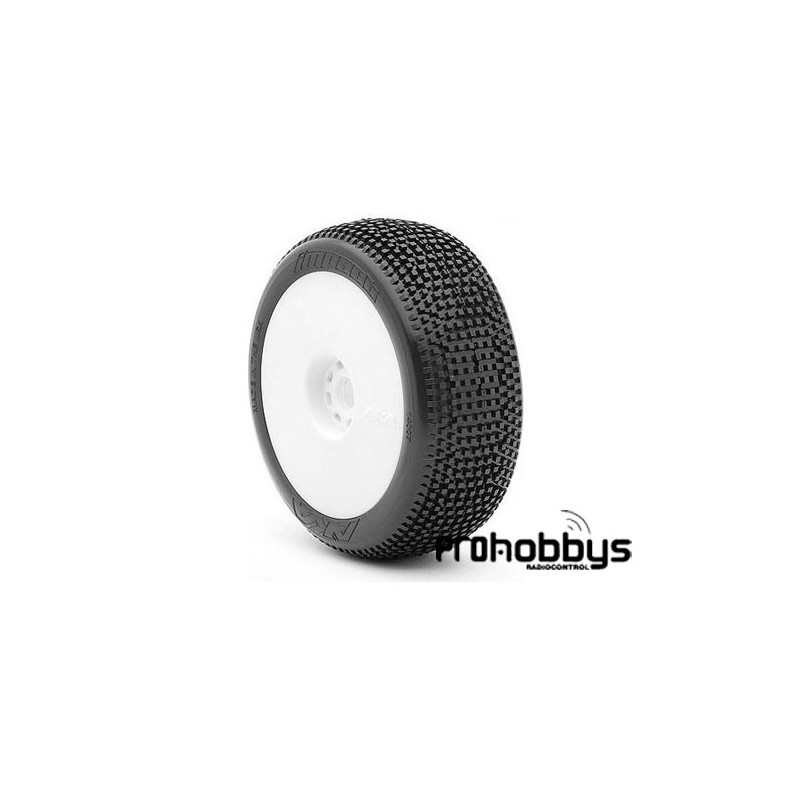 Ruedas AKA 1:8 BUGGY IMPACT (SOFT - LONG WEAR) montada llanta blanca