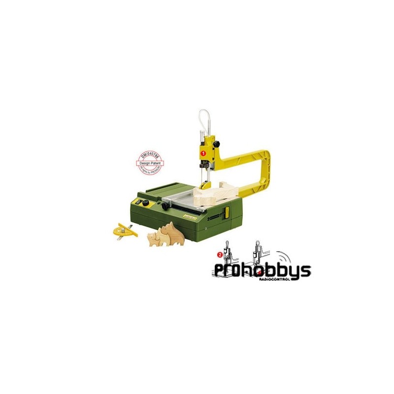 Cuerpo en ABS con puerta lateral deslizante y cajón depósito para hojas de sierra. Motor de 220- 240V. aprobado por el VDE (85W). Silencioso y con una vida útil duradera.