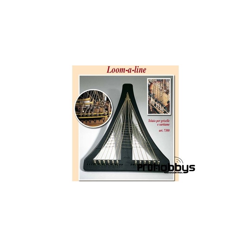Ingenioso telar de diseño triangular con bulones insertables a voluntad en su base inferior para poder confeccionar con toda comodidad culquier tipo de jarcia o escala en labores de modelismo naval.